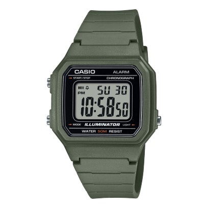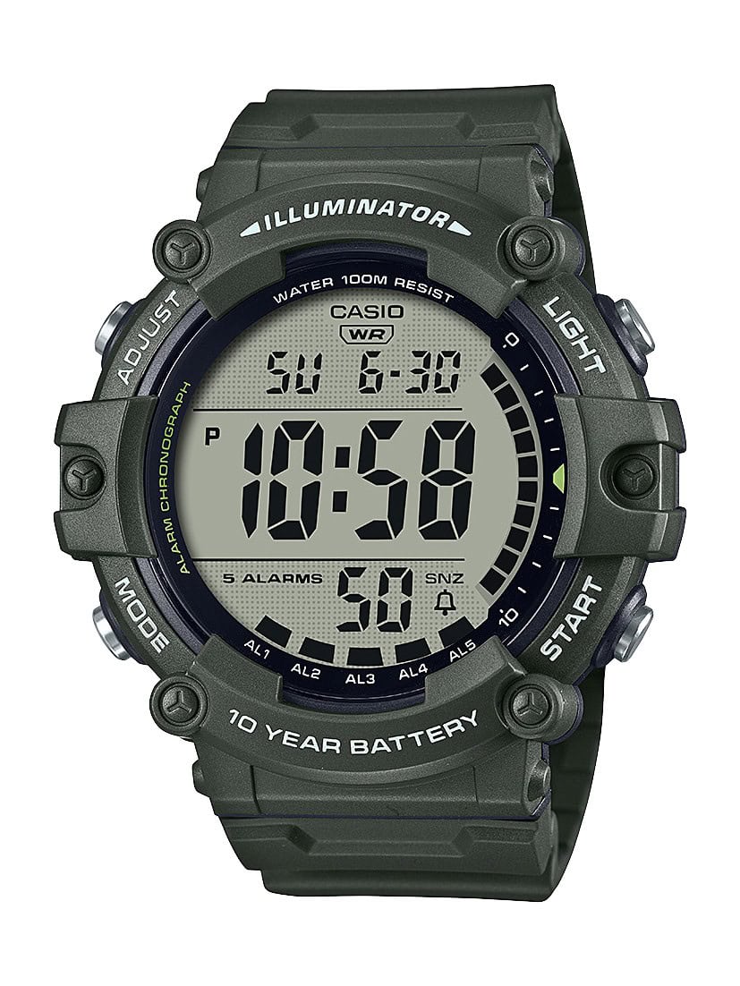 casio digi green beige 50mtr multi alarm resin x/long strap