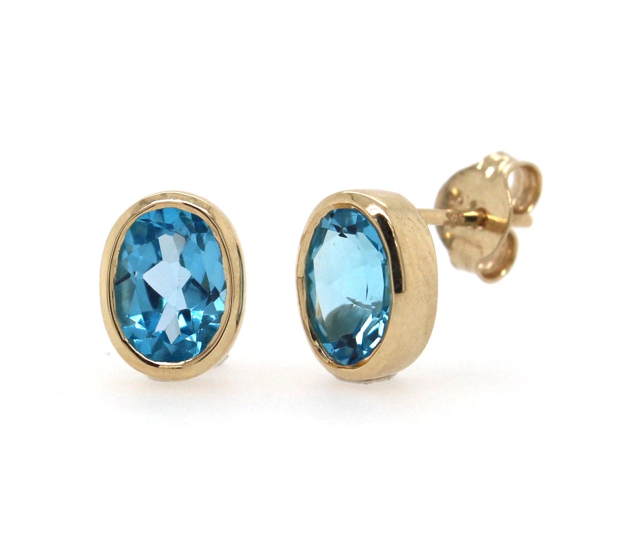 9ct Gold Rubover Oval Blue Topaz Stud Earrings