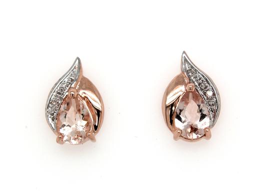 9ct Rose Gold Pear Shaped Morganite And Diamond Claw Stud Earrings