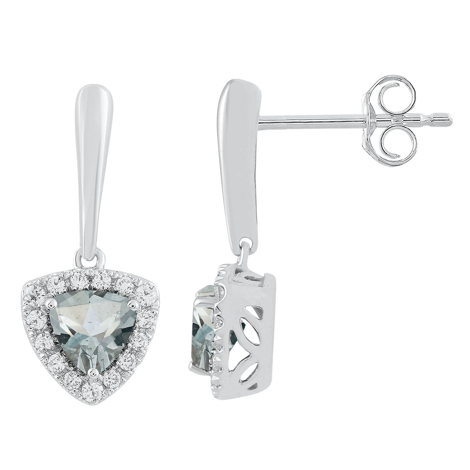 9ct White Gold Aquamarine and Diamond Drop Earring 0.2ct TDW