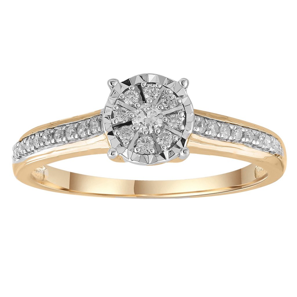 9ct Yellow Gold Cluster Diamond Ring With Stones In Shoulders. 20Tdw