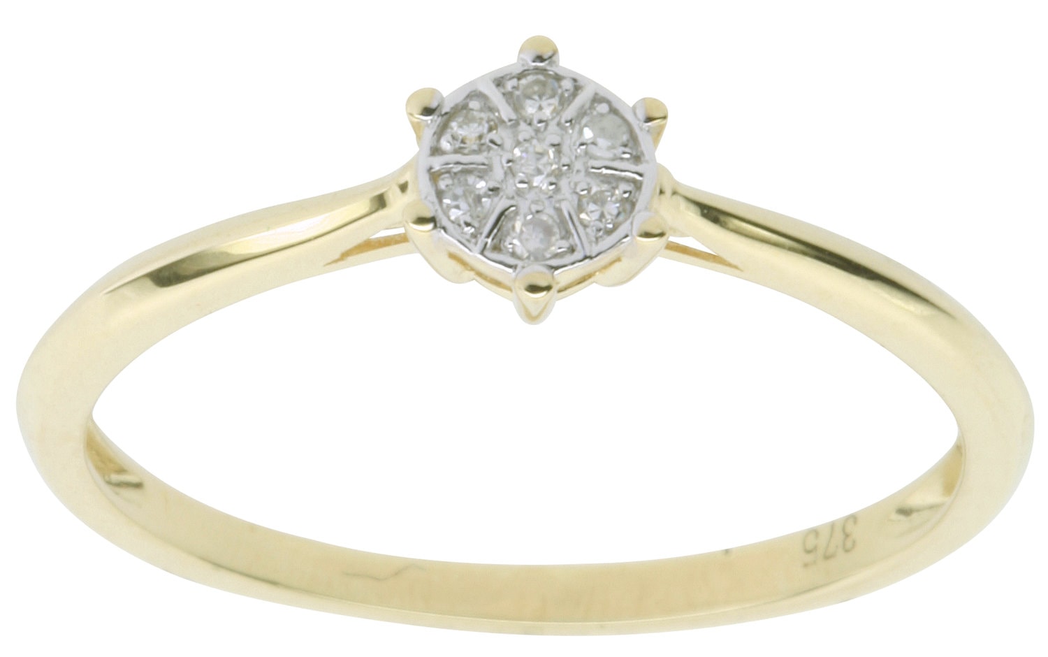 9ct Yellow Gold Cluster Diamond Solitaire Look Ring