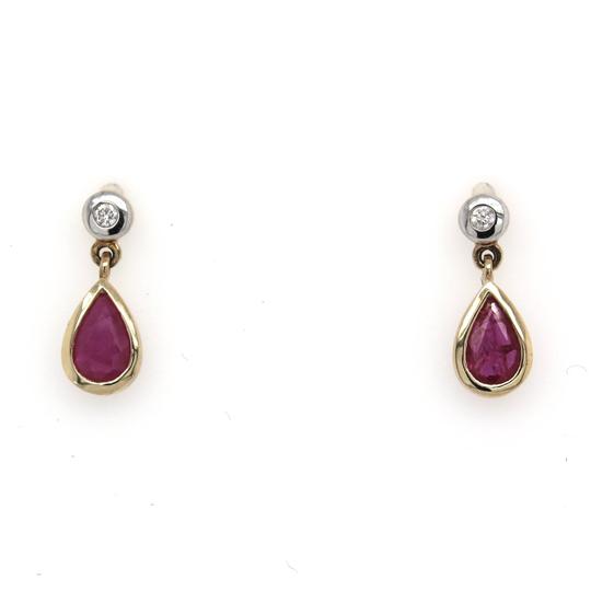 9ct Yellow Gold Pear Shaped Ruby & Diamond Drop Earrings