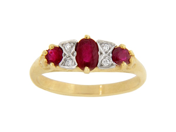 9ct Yellow Gold 3 Stone Ruby and Diamond Ring