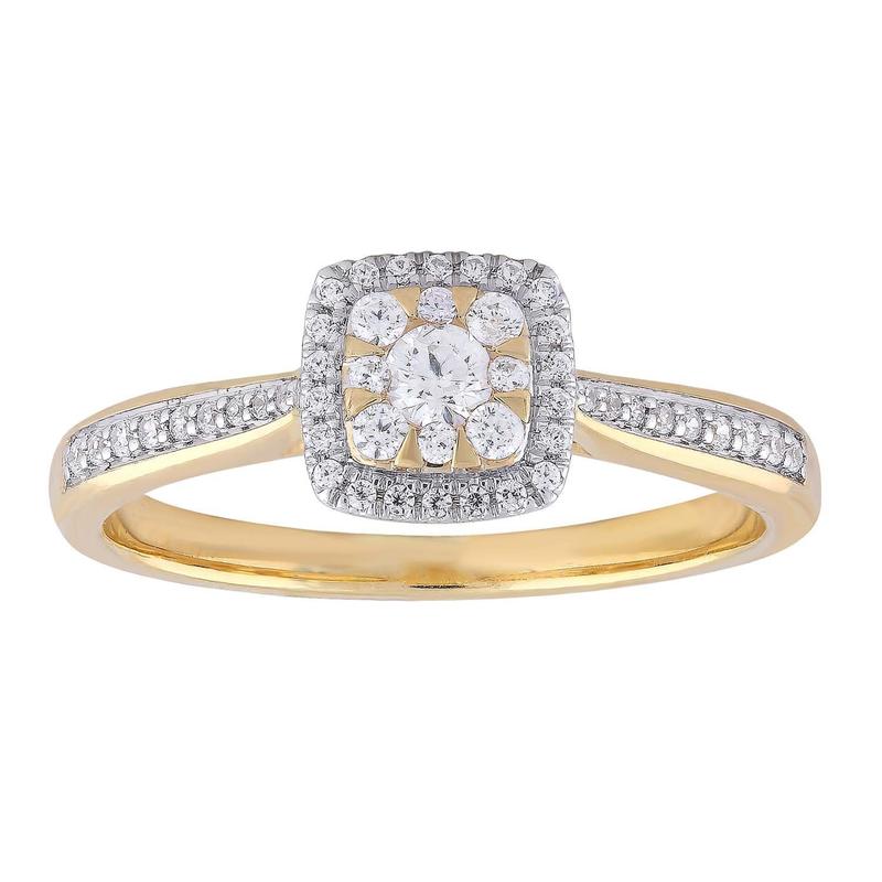 9ct Yellow Gold Square Diamond Cluster Ring .33 Tdw