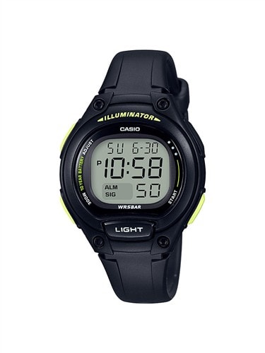 Casio black and green 50wr digital watch with day and date LW203-1B