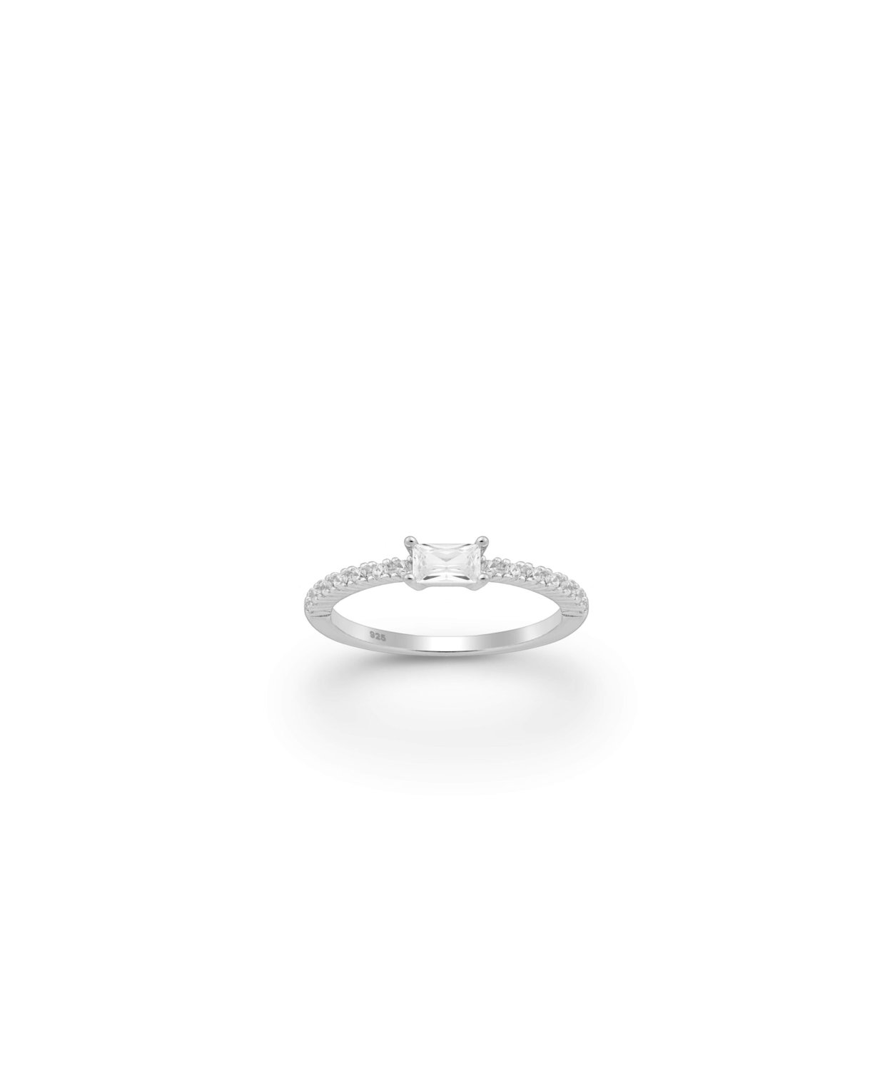Sterling Silver emerald cut cz ring with stones in shoulders
