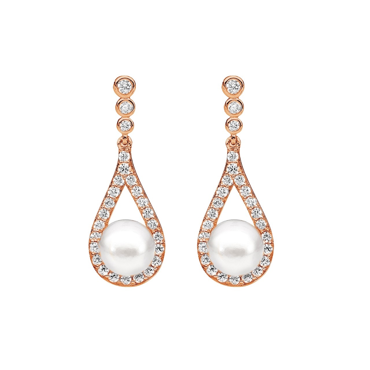 Ellani Rose Gold Plated Fresh Water Pearl Drop Earrings with CZ