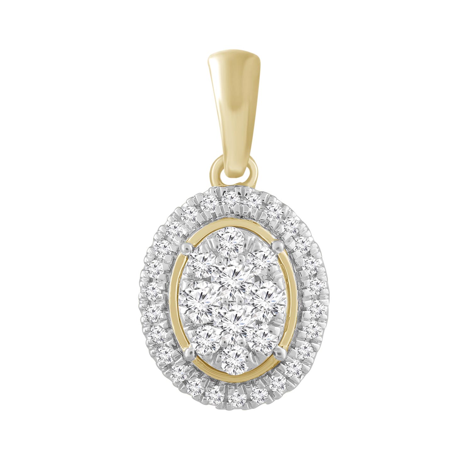 9ct Yellow and White Gold Diamond Oval Cluster Pendant