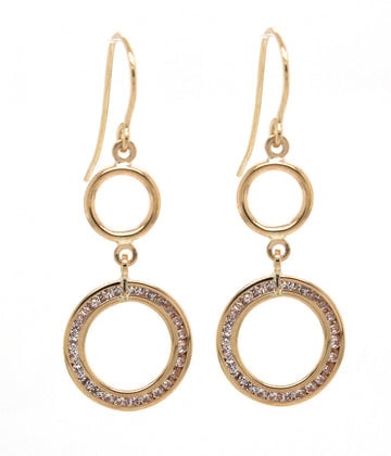 9ct Yellow Gols and Cubic Zirconia Duo circle, circle of life CZ earrings