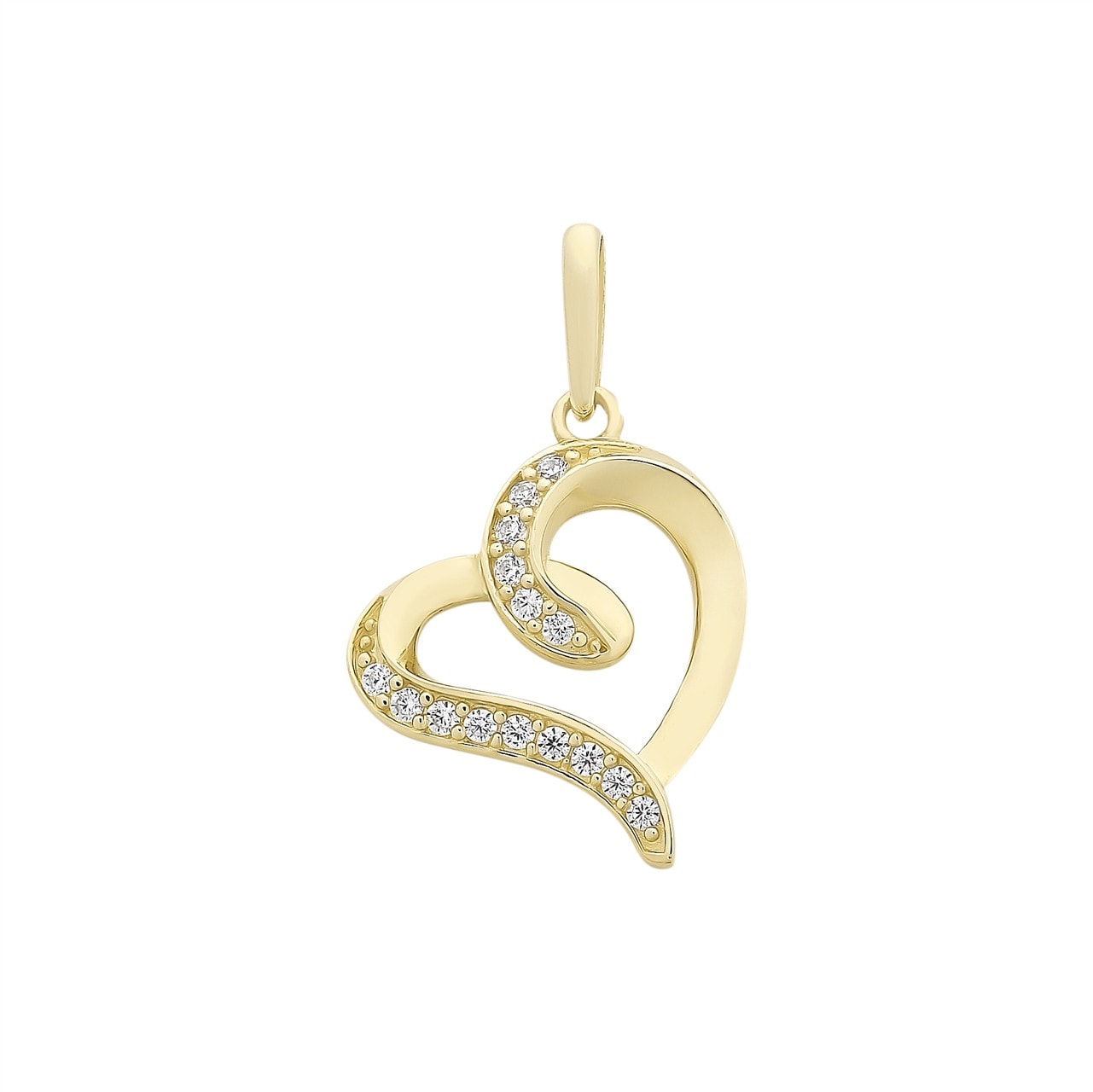 9ct Yellow Gold Open Heart Pendant with Cubic Zirconia