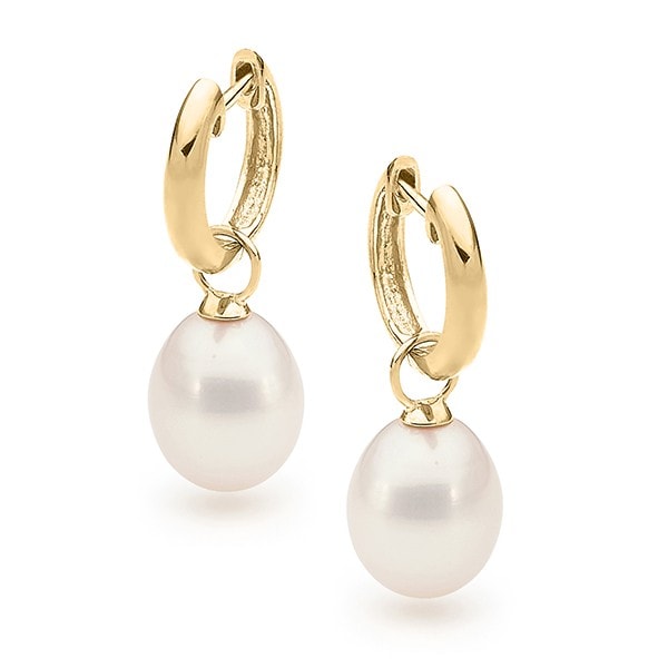 Gold Huggie 9ct White pearl Drop Earrings