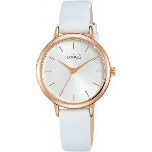 Lorus Ladies Rose Gold Analogue Watch with White Leather Strap