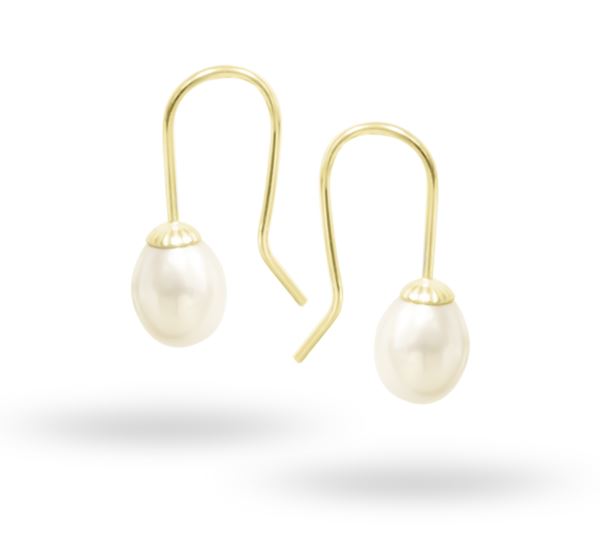 Fresh Water Pearl 7-7.5mm White Drop on Fixed 9ct Yellow Gold Hook Earrings