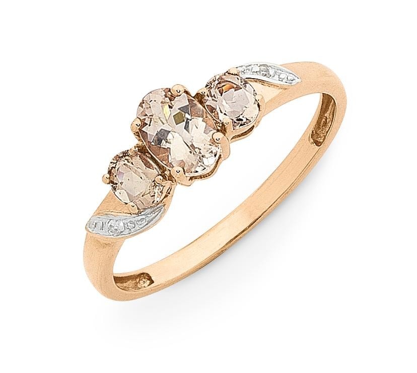 9ct Rose Gold 3 Stone Morganite and Diamond Ring