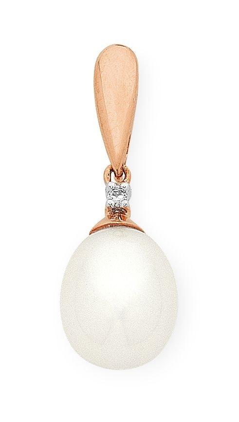 9ct Rose Gold Fresh Water Pearl and Diamond Pendant