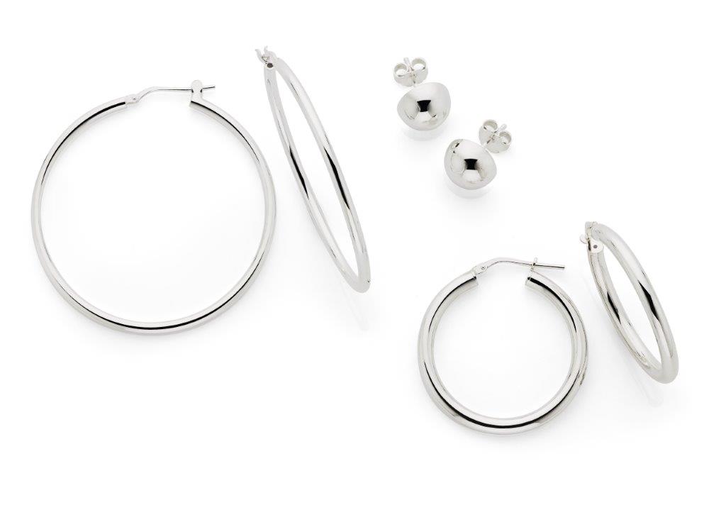 Ss Earring Set – 10mm Dome Studs – 25mm Hoops – 50 mm Hoops