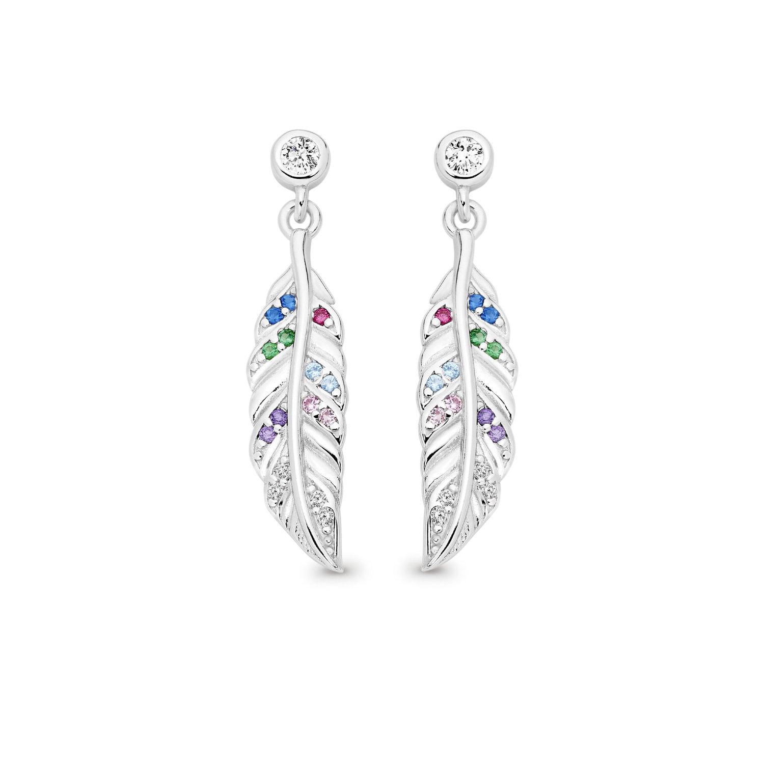 Sterling Silver Multi-Coloured Cubic Zirconia Feather Drop Earrings