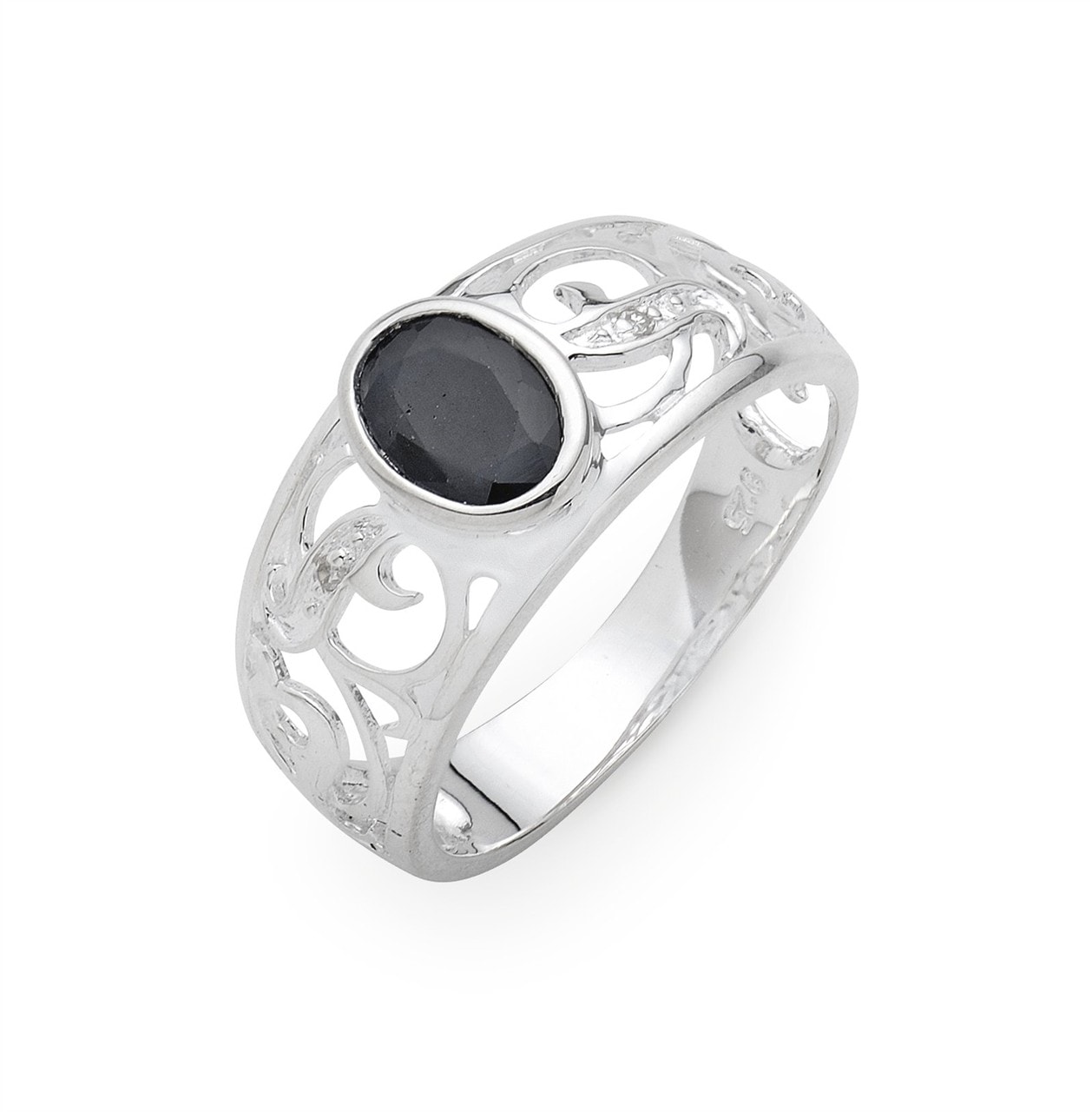 Sterling Silver Sapphire and Diamond Filigree Ring
