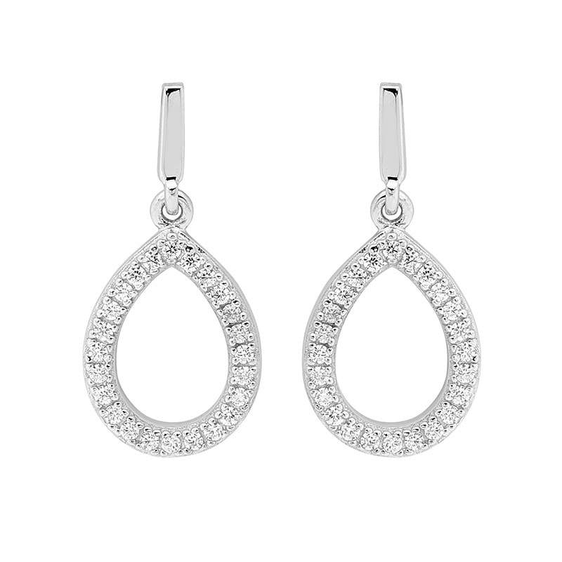 Ellani Sterling Silver White CZ Drop Tear Earrings