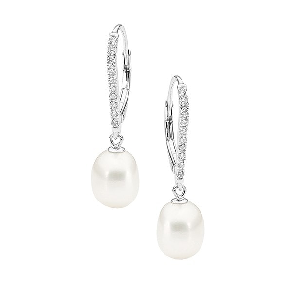 Be the first to review “Sterling Silver White Pearl with Cubic Zirconia Hook Earrings”